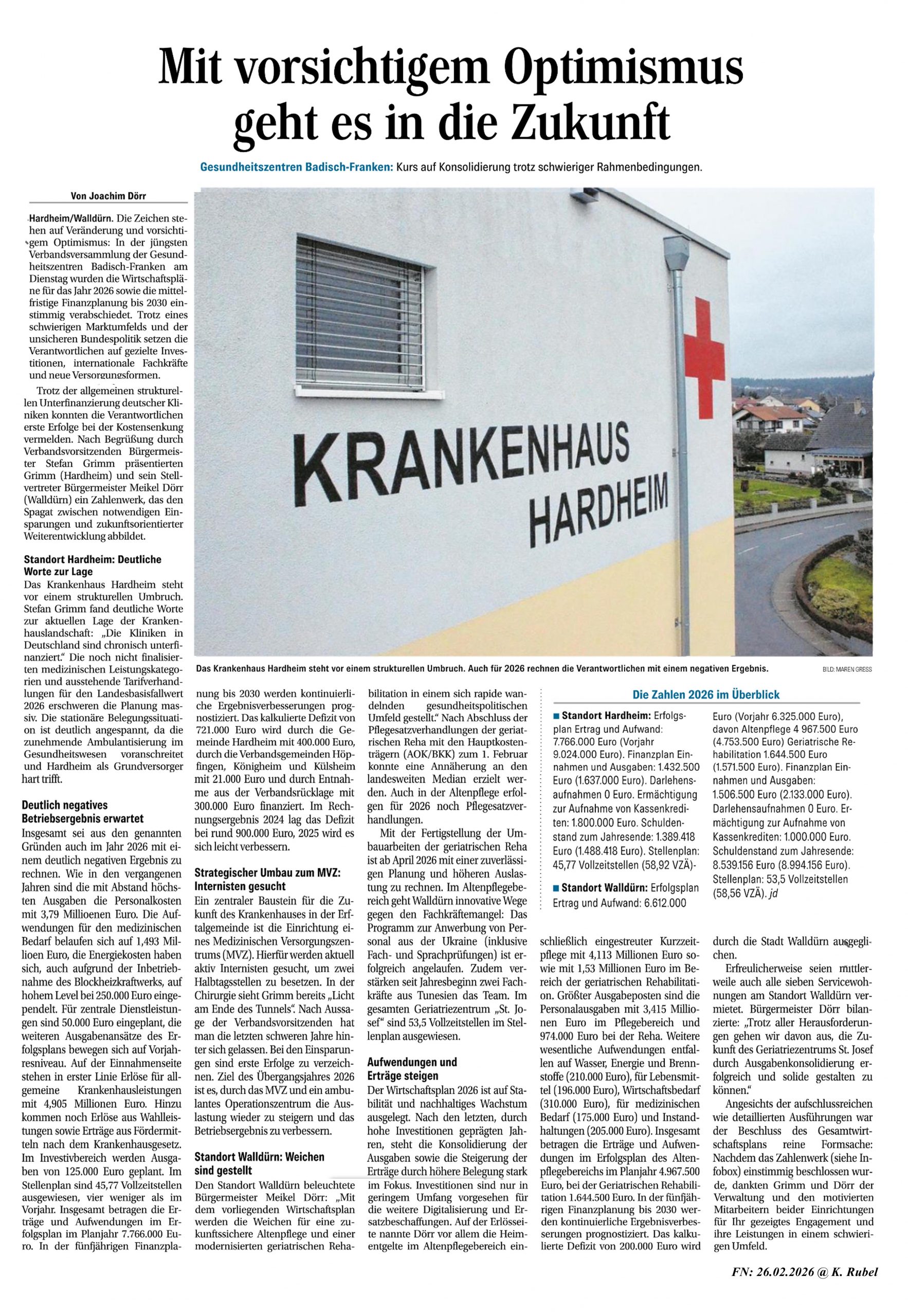 Gesundheitszentren Badisch-Franken:Kurs auf Konsolidierung trotz schwieriger Rahmenbedingungen.