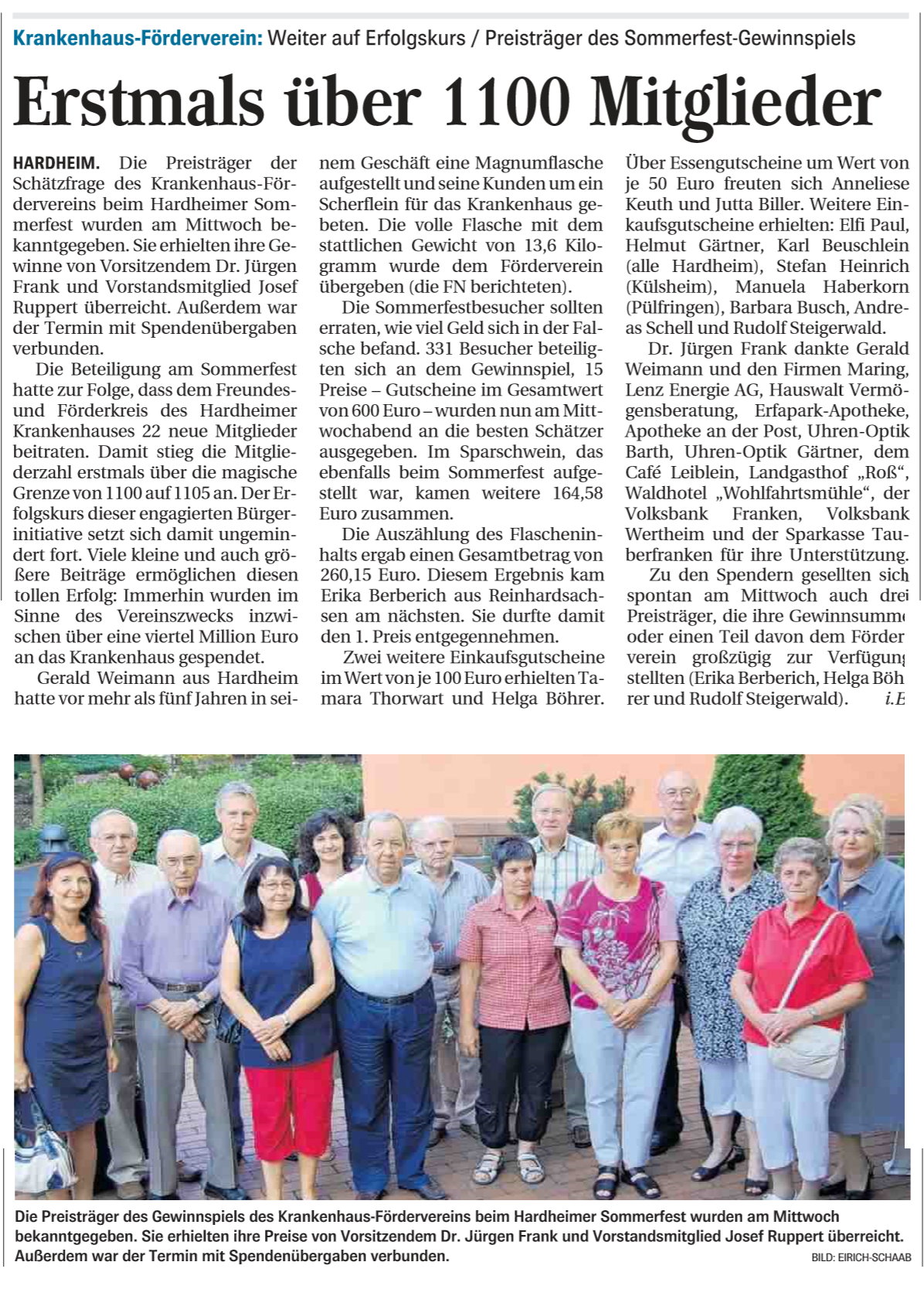 03.07.2009 FN Erstamals über 1100 Mitglieder Schätzergebnis